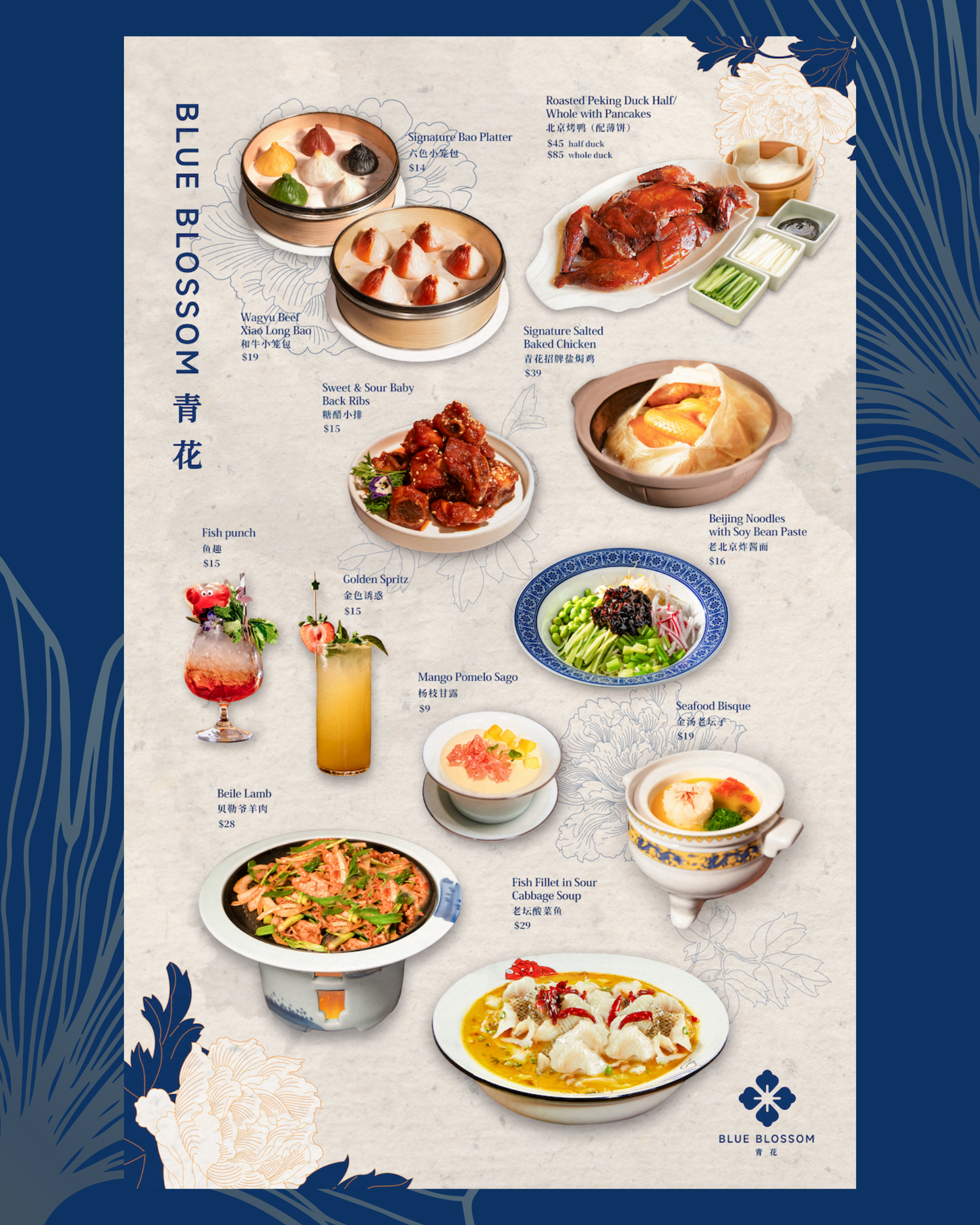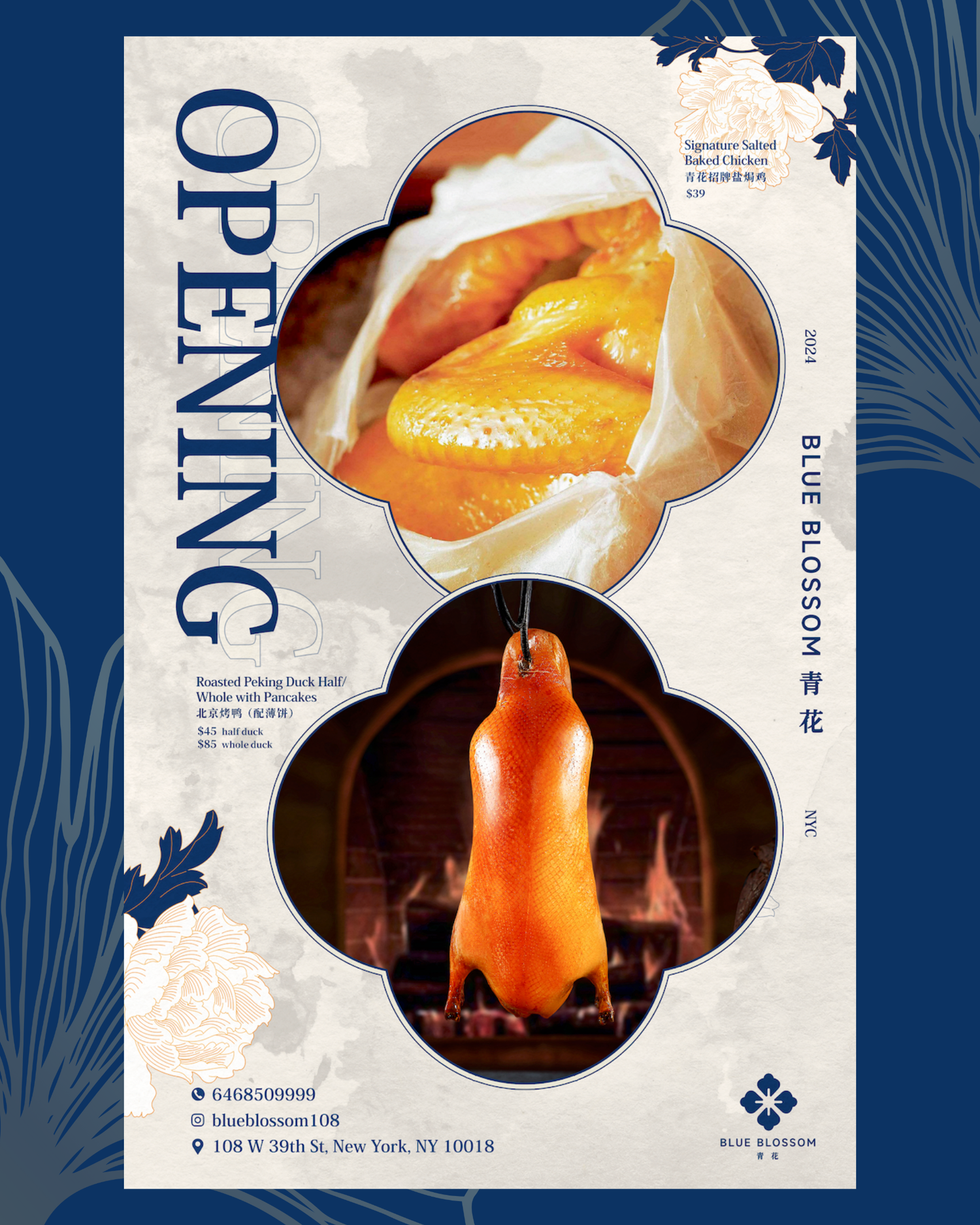 We were honored to collaborate with our clients at Blue Blossom, the sister restaurant to the beloved Sichuan Mountain House. For their grand opening campaign, we not only captured stunning visuals but also designed a series of elegant and eye-catching posters.