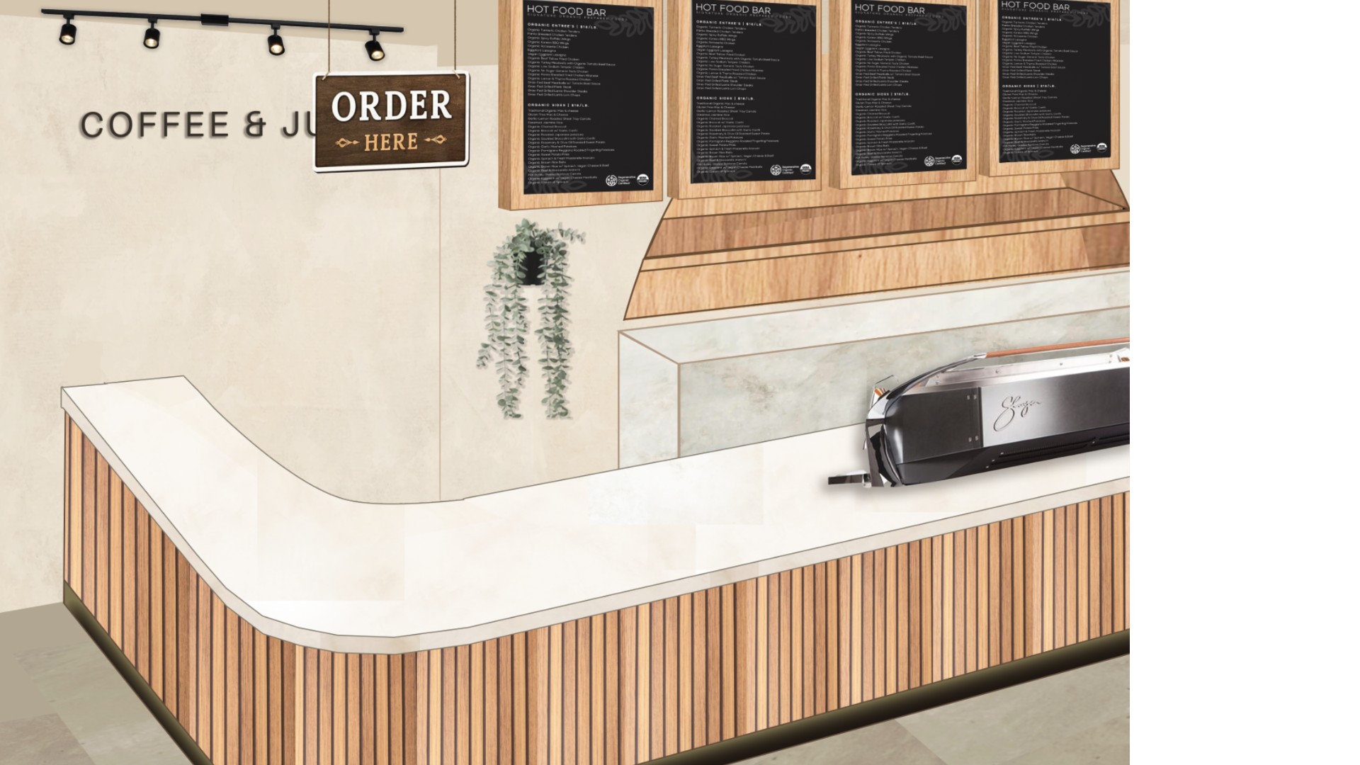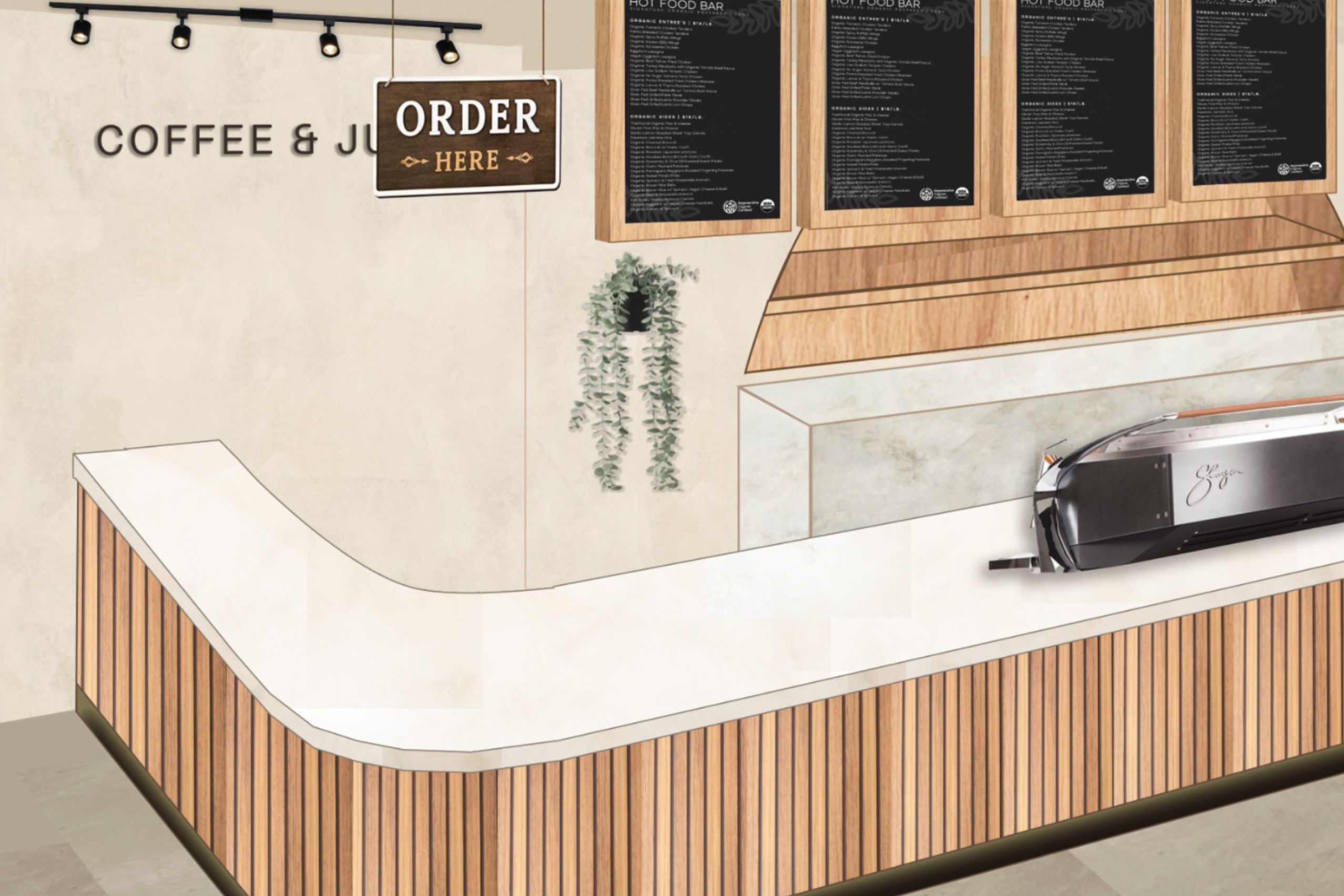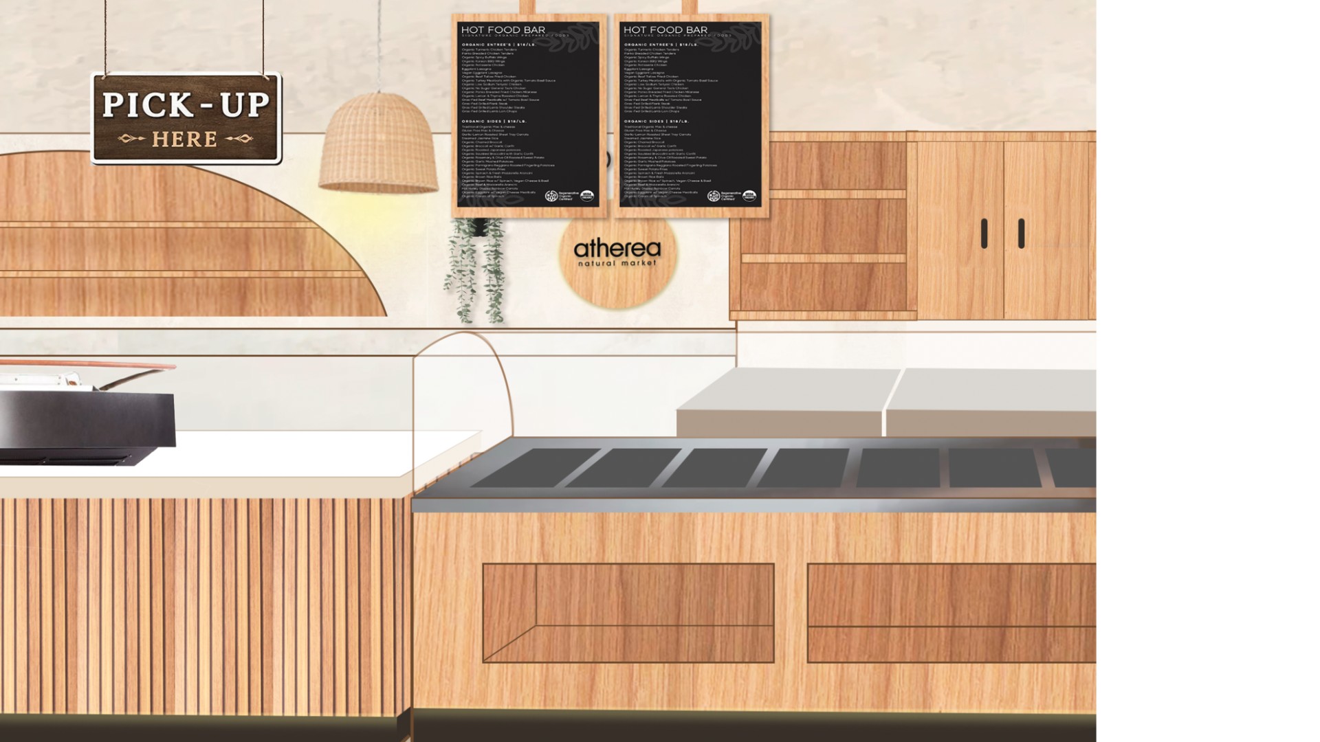 The design introduces Atherea as a fresh sub-brand, targeting a younger audience that prioritizes organic living, wellness, and intentional food choices. Rather than competing with conventional supermarket aesthetics, the space is positioned as a more curated, lifestyle-oriented grocery experience.