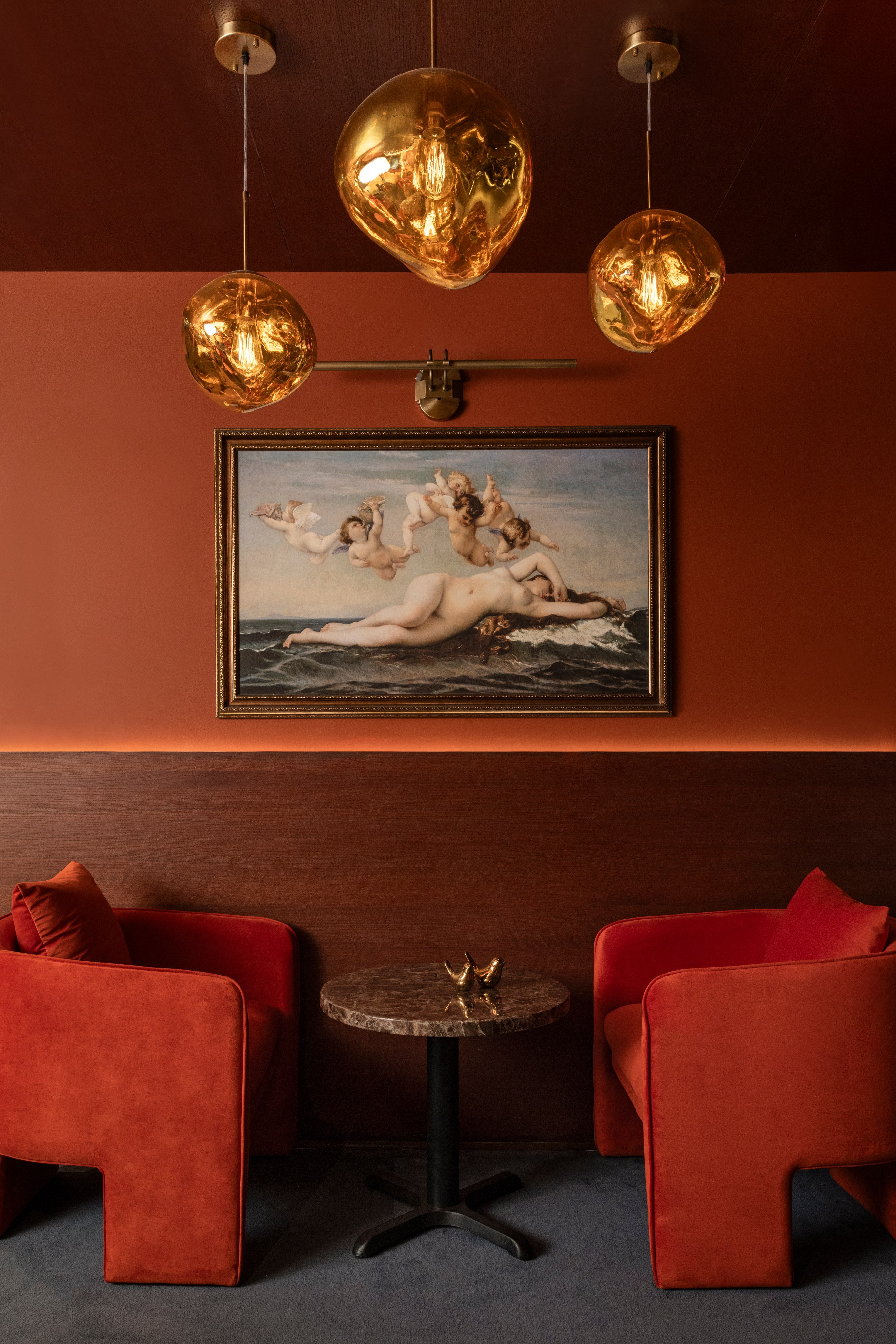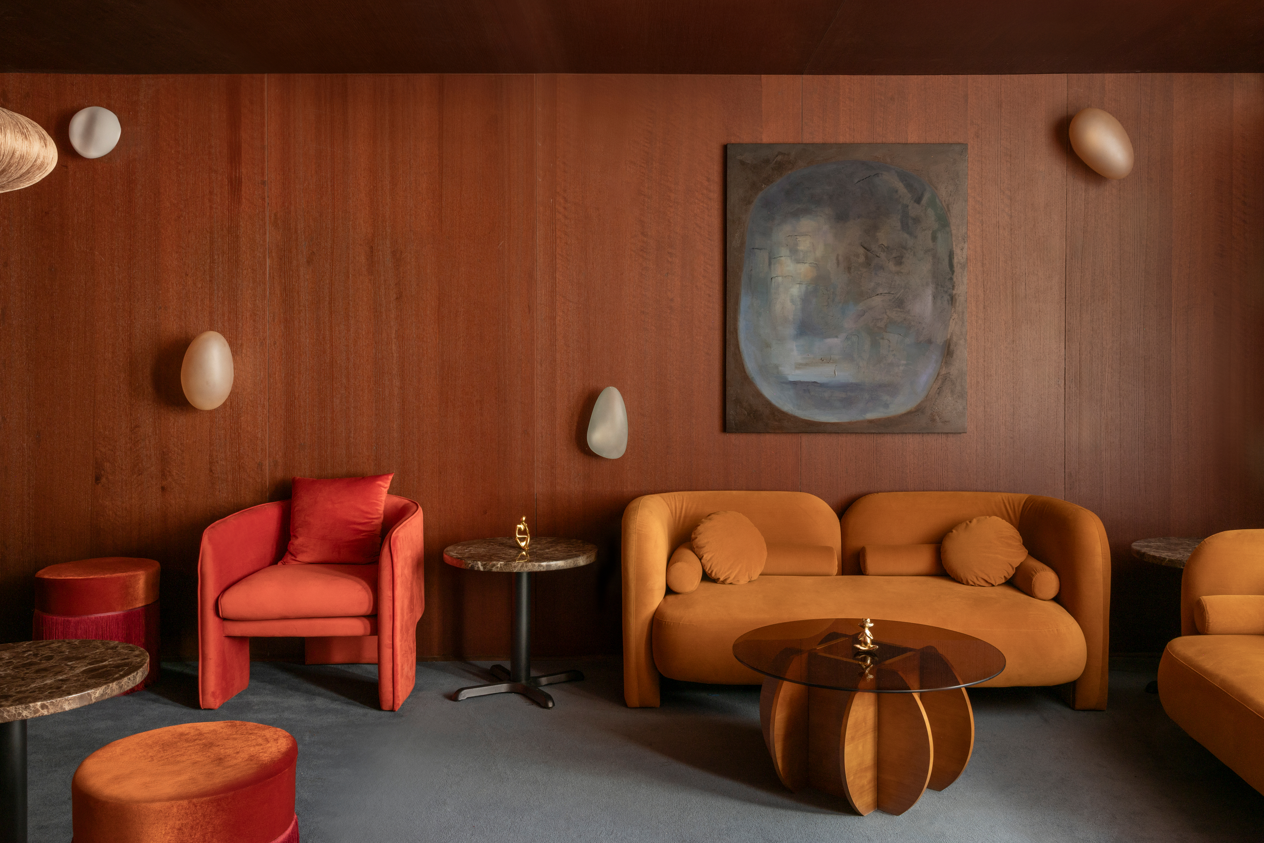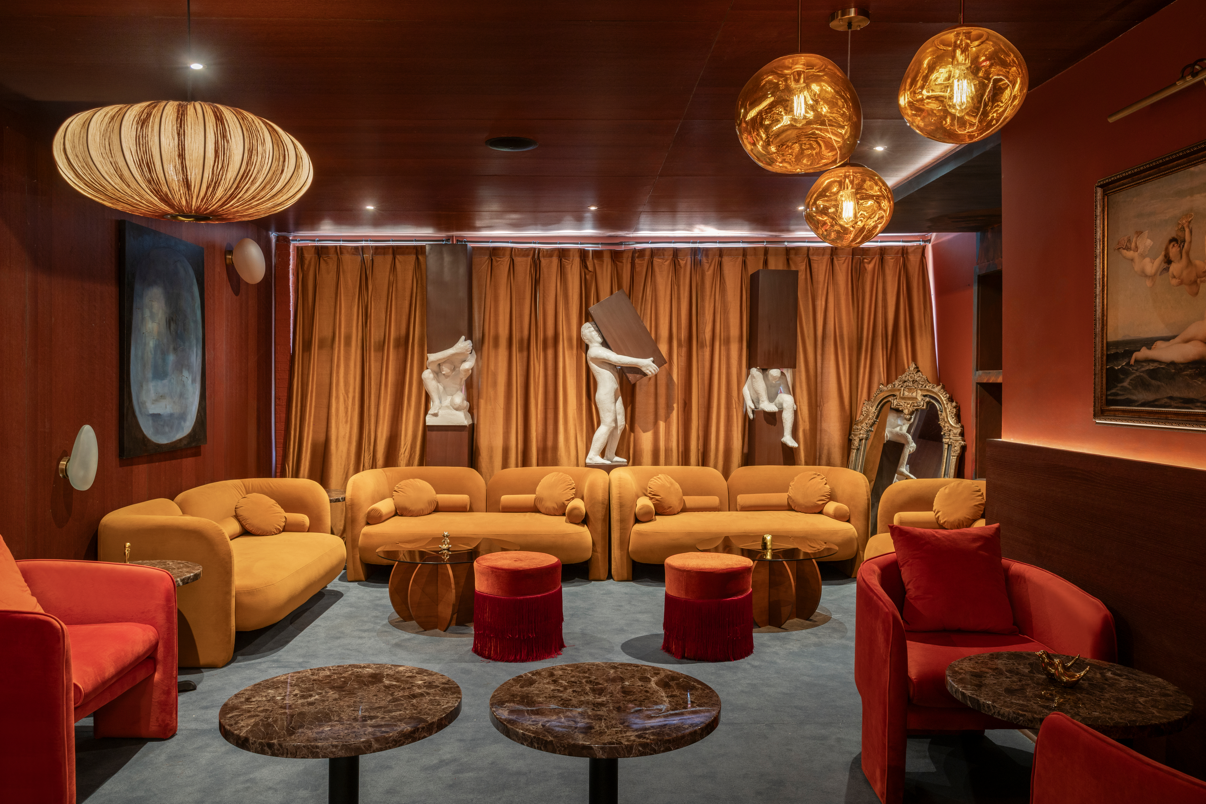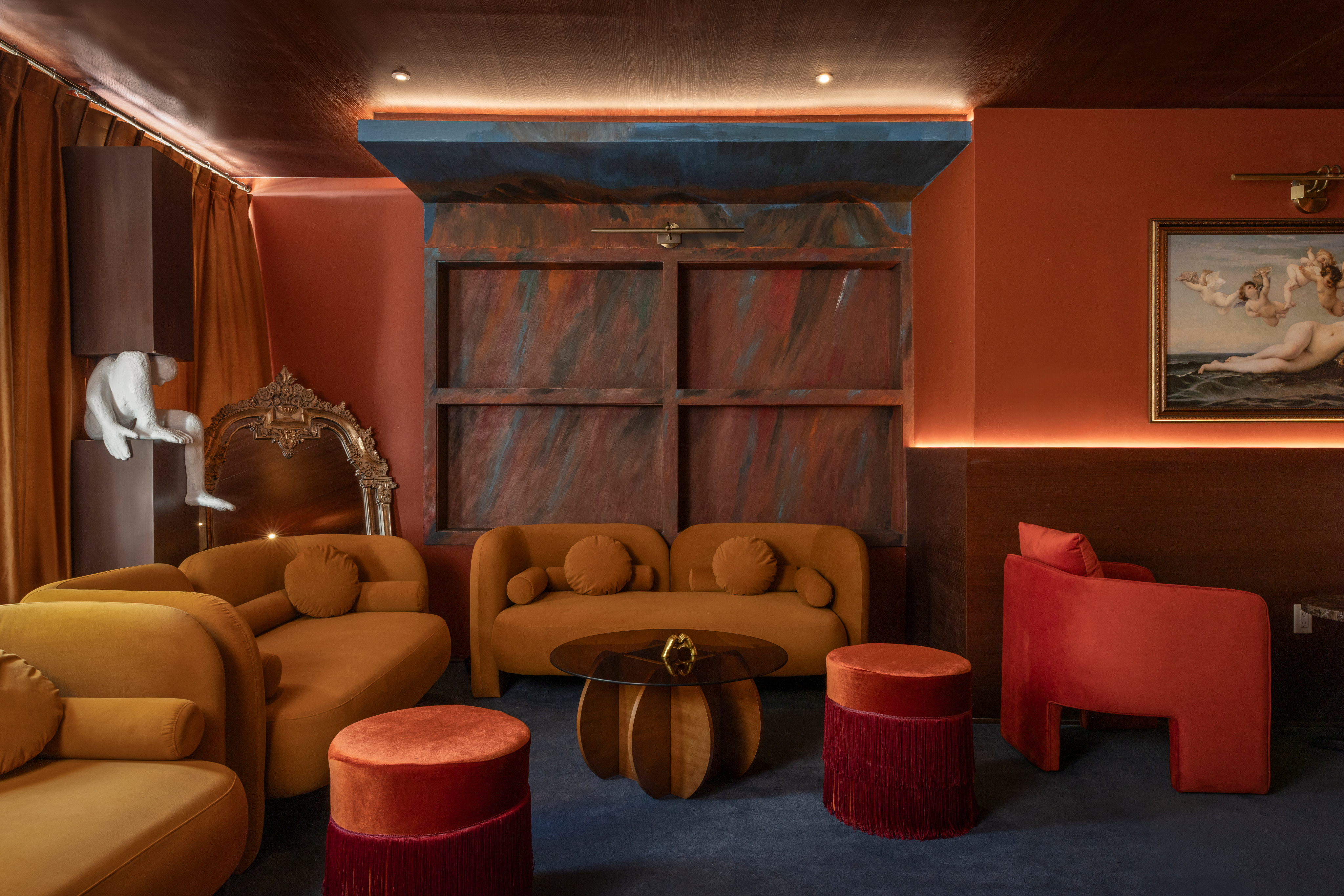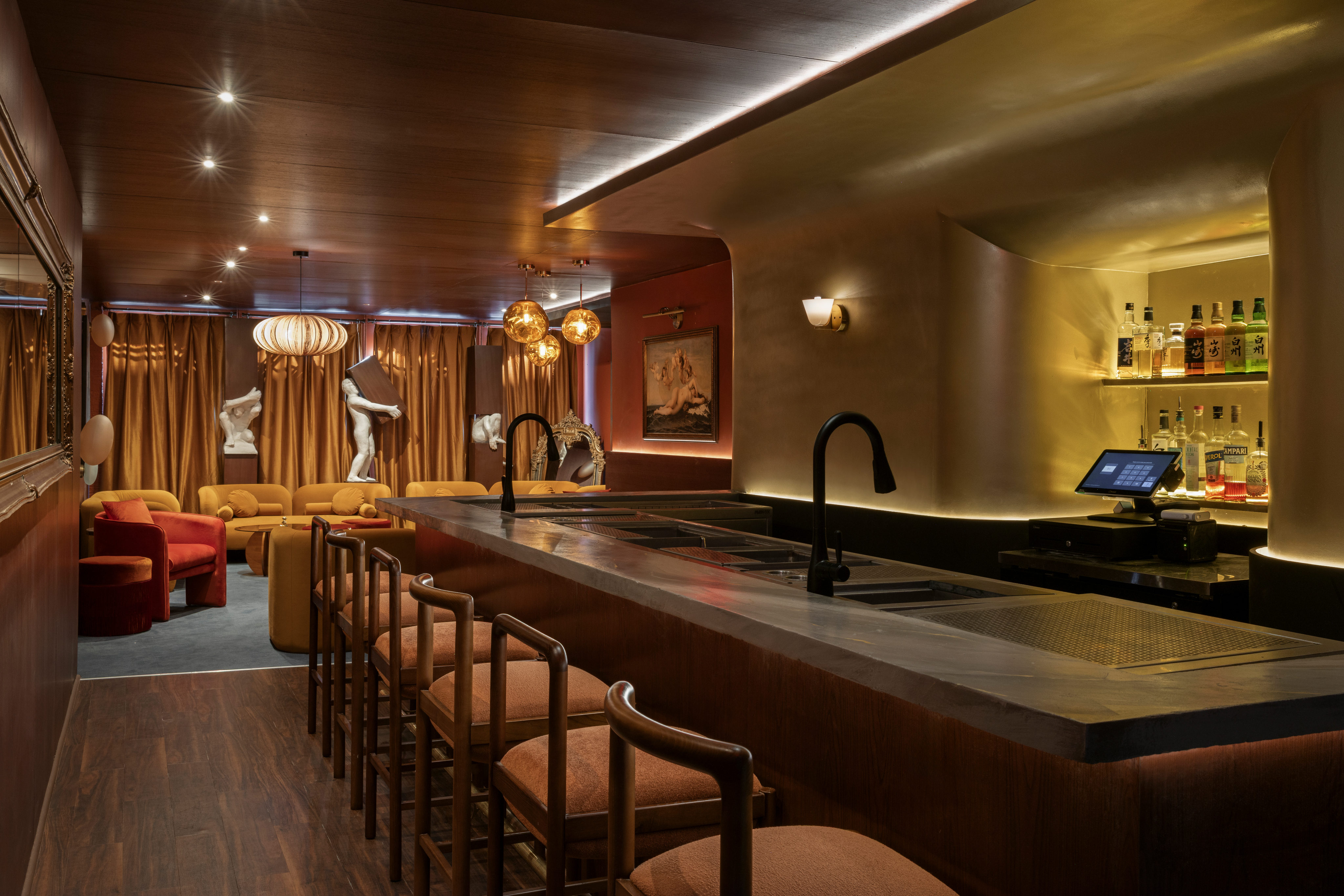 In contrast, the upstairs speakeasy introduces a more refined and curated experience. Inspired by the ambiance of an art collector’s private residence, the space leans into a low-key luxury—layered, intimate, and slightly enigmatic. Rich materials, controlled lighting, and carefully selected art elements define the environment, creating a sense of discovery and exclusivity while maintaining a subtle connection to the narrative below.