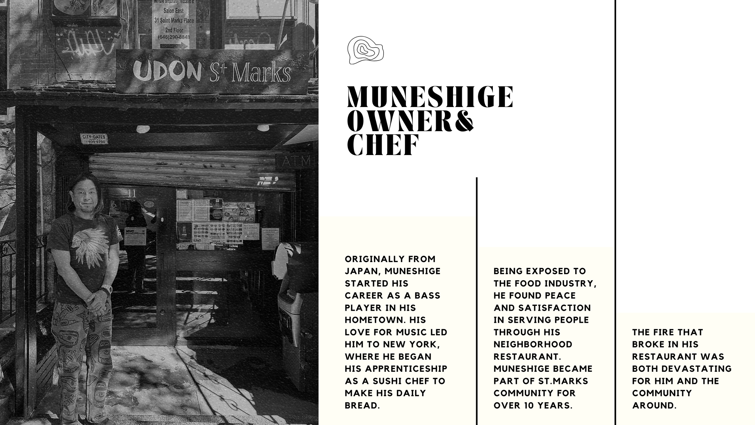 From bass player to sushi chef: Muneshige found his rhythm serving the St. Marks community for over a decade until fire changed everything.
